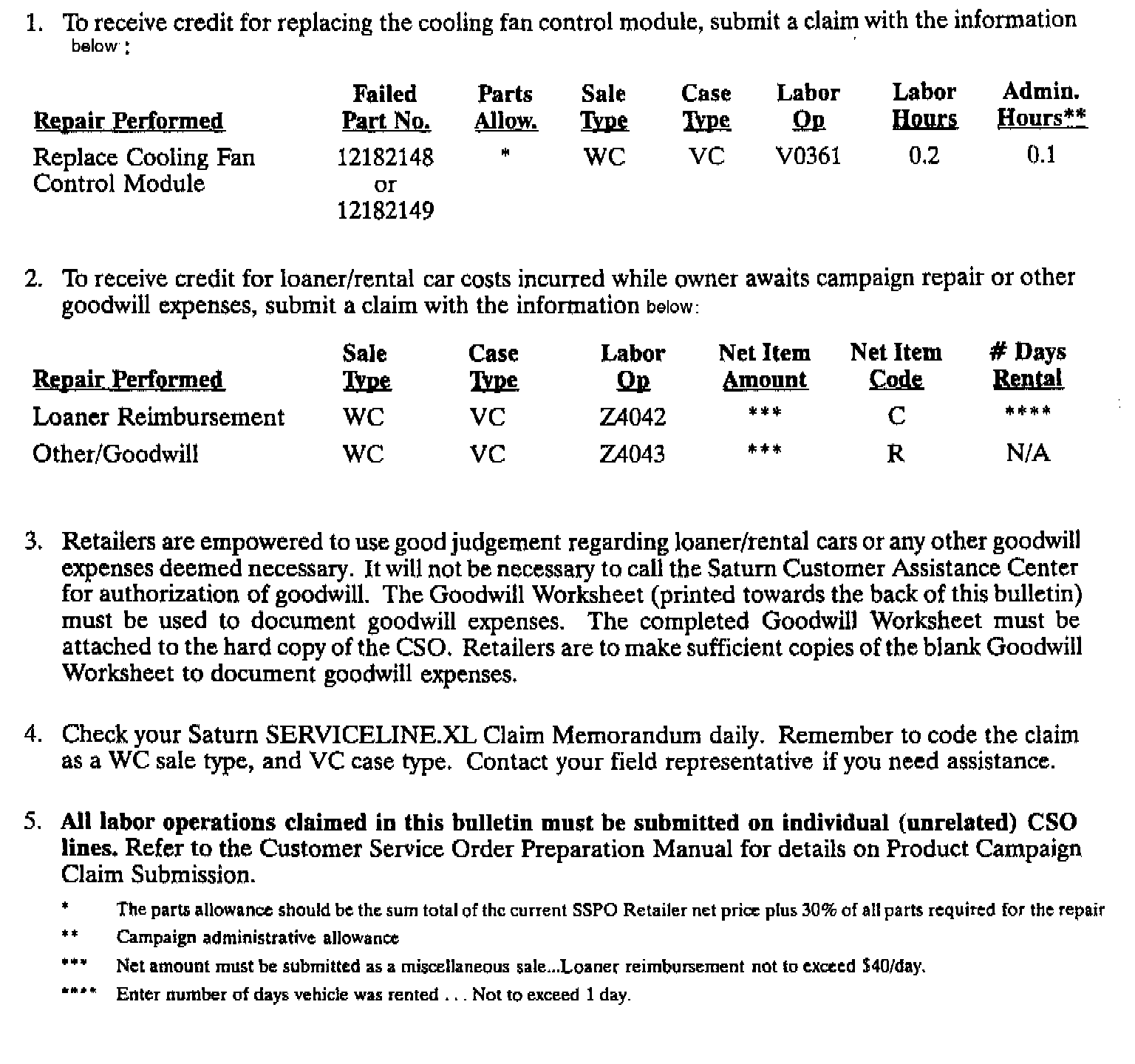 1. A pre-shipment of cooling fan control module assemblies required to perform this campaign has been automatically sent to you from Saturn Service Parts Operations (SSPO). These initial shipments are to aid the Retailer in campaign preparation and ensure minimal customer inconvenience. Further shipments will automatically be sent at a later date to fulfill your forecasted needs.