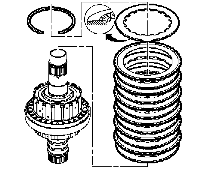 24. Assemble steel and new fiber direct clutch plates into input housing in alternating order beginning with a steel plate.