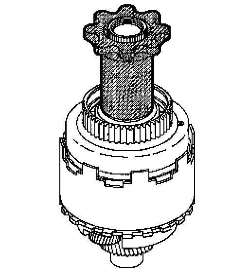 28. Assemble reaction carrier shaft and shell assembly onto input housing. The splines on inside of shell engage the direct clutch fiber plates.
