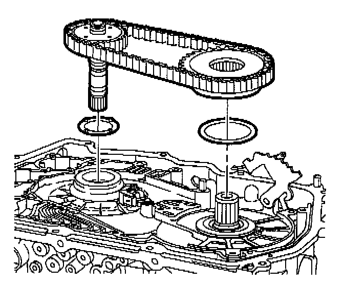 5. Install as a complete assembly, the drive sprocket, driven sprocket, and drive link assembly onto transaxle.