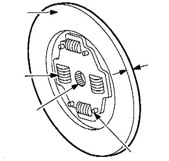 8. Check disc for loose damper springs, hub, or rivets. Replace disc if any are broken or excessively loose.