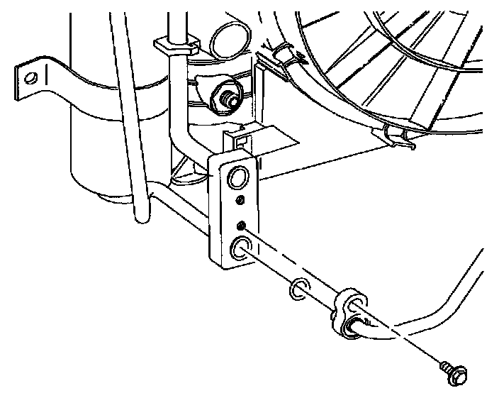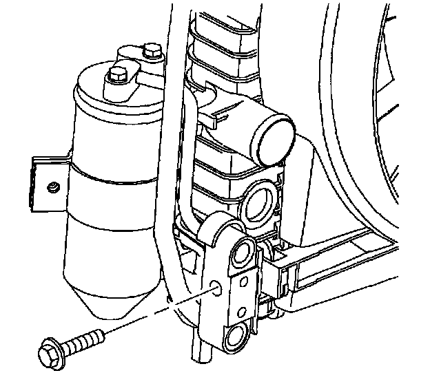 8. Install condenser block-to-radiator end tank bolt.