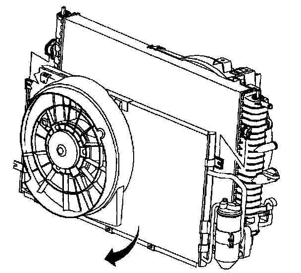 4. Remove pusher fan harness from puller fan shroud tabs and push harness clear of radiator end tank.