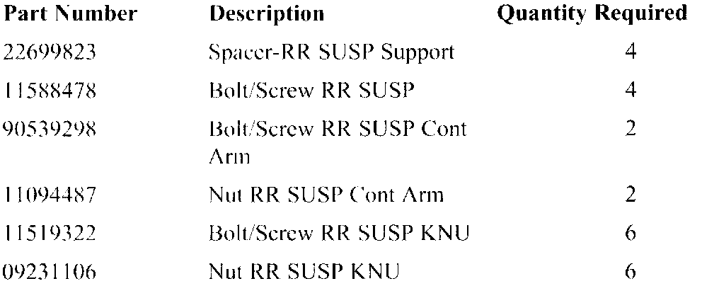 Service Manual Update for 2000/2002 L-Series Chassis Service Manuals Regarding Alignment Specifications and Service Procedure for Installation of Spacers between Rear Suspension Support and Vehicle Body when Performing Wheel Alignment.