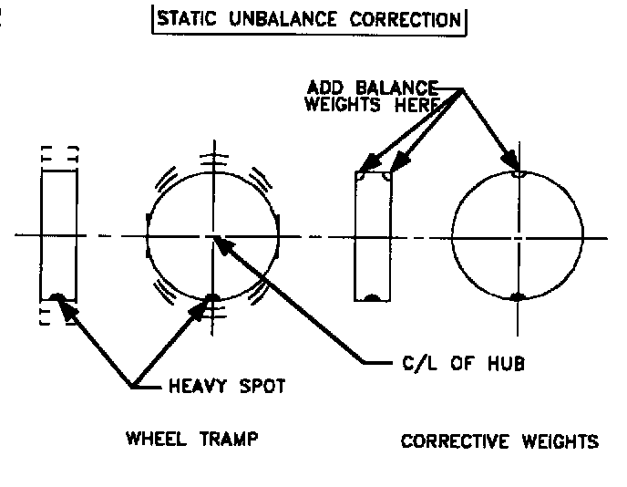 Static balancing ensures an equal distribution of weight around the wheel/tire. Assemblies that are statically unbalanced cause a bouncing action called tramp. This condition may cause vibration on smooth roads at highway speeds resulting in decreased riding comfort to the driver and passengers. In severe conditions, excessive static imbalance can also decrease traction due to loss of tire-to-road contact. Statically imbalanced tires can develop a cupping wear condition if the imbalance is not corrected.