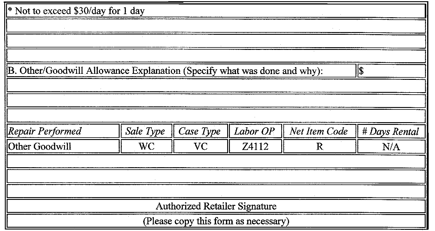 As stated in the 'Credit' section of this bulletin, Retailers are empowered to use good judgement regarding loaner/rental cars or other goodwill expenses that might become necessary for customer satisfaction.