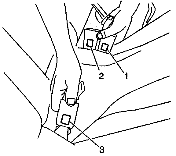 When calling your Saturn Retailer, give them the number of the corresponding safety belt(s) as shown in the illustrations that need to be replaced You will also need to be able to identify what color interior you have.