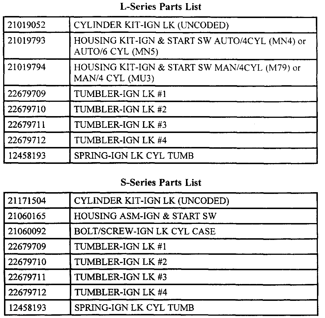 Refer to the procedure detailed in this bulletin to replace ignition lock cylinder, tumblers, and tumbler springs.