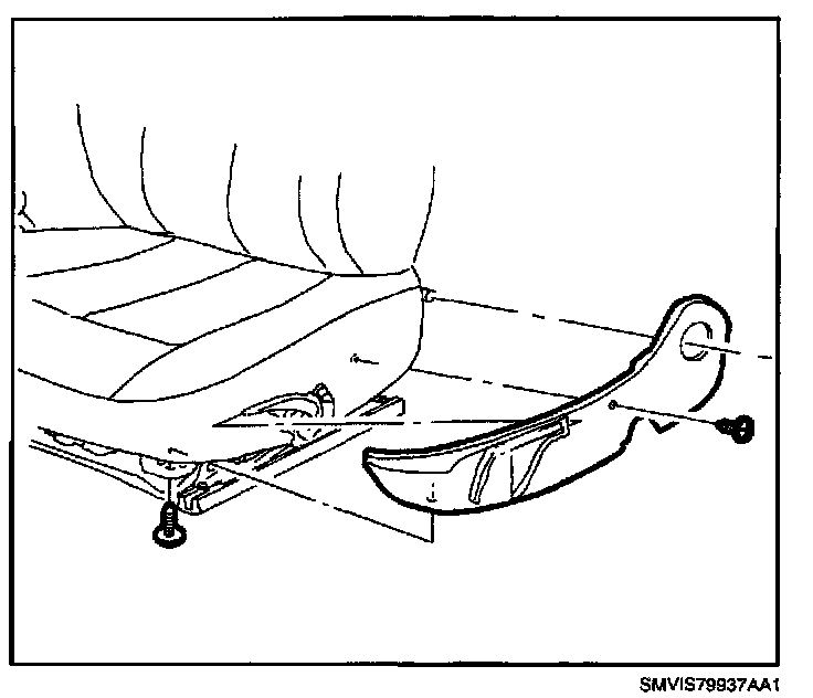 1. Move seat to full forward position and remove front seat fasteners.