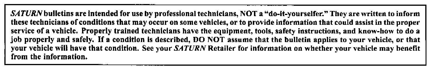 2000 Saturn L-Series vehicles built before and Including VIN YY685000