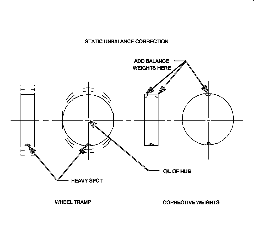 Static balancing ensures an equal distribution of weight around the wheel/tire. Assemblies that are statically unbalanced cause a bouncing action called tramp. This condition may cause vibration on smooth roads at highway speeds resulting in decreased riding comfort to the driver and passengers. In severe conditions, excessive static imbalance can also decrease traction due to loss of tire-to-road contact. Statically imbalanced tires can develop a cupping wear condition if the imbalance is not corrected.