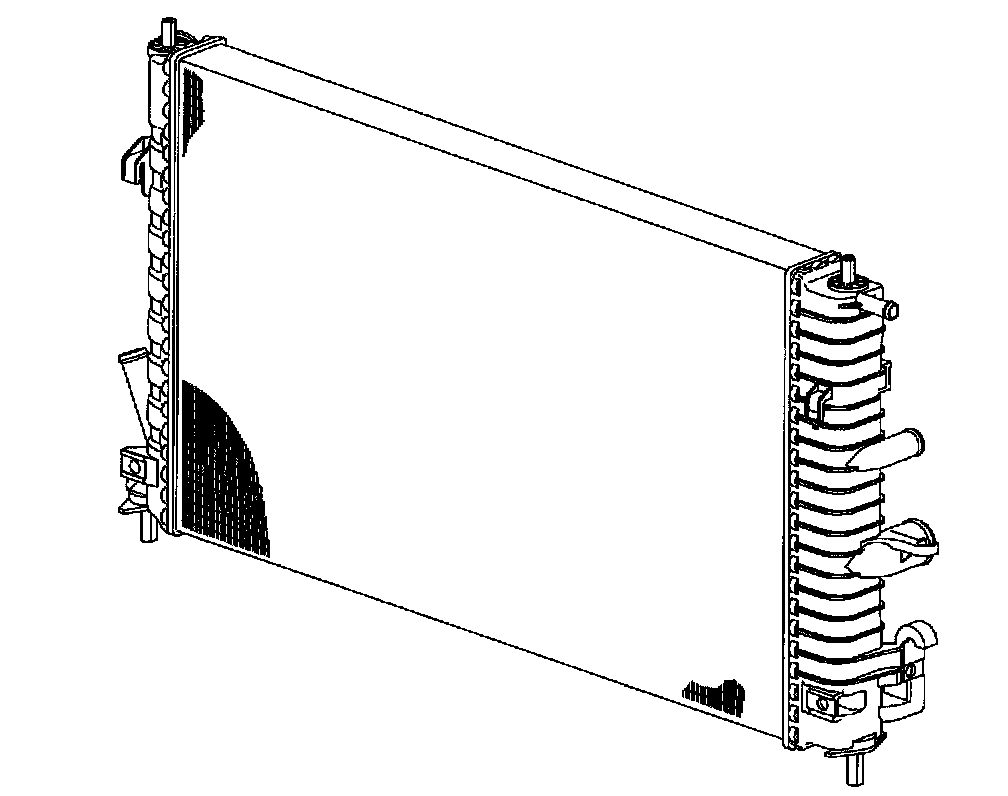 A cross-flow radiator is used on all models. Tanks on this type radiator are located to the right and left of the core. All service radiators have oil coolers with inlet/outlet fittings for transaxle fluid cooling.