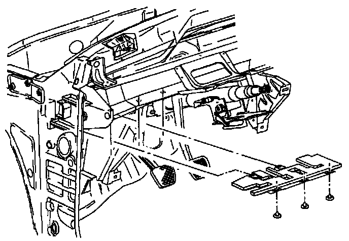 3. Position pedal assembly in vehicle and install lower pedal to front of dash attachment nuts.