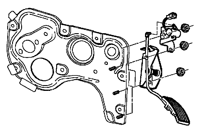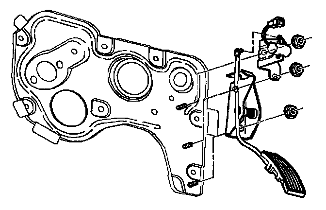 4. Depress accelerator pedal and install upper pedal bracket to front of dash attachment nut.