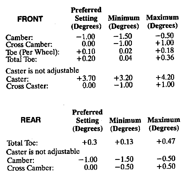 Wheel Alignment Specifications