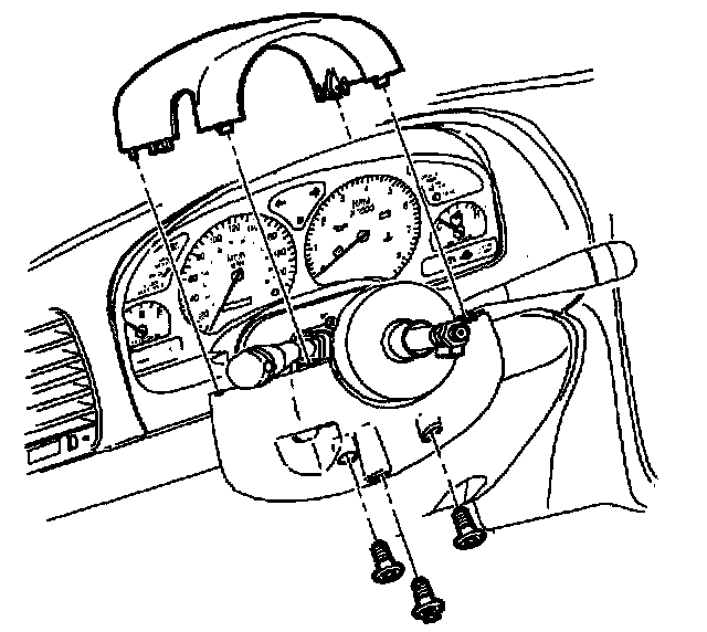 1. Remove three lower steering column trim cover to steering column attachment screws.