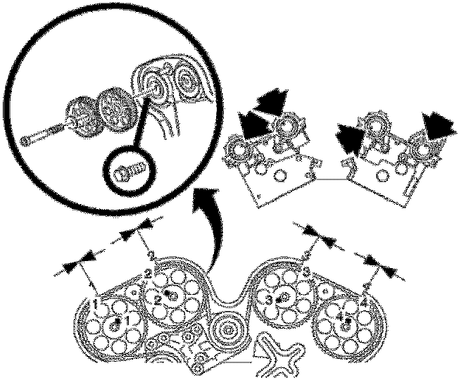 Ensure that the 3-4 timing marks are about 1 mm (approximately the width of the timing marks on the sprockets) on the retard side. If they are not, turn lower idler clockwise to allow retard of the 3-4 cams and repeat previous step.