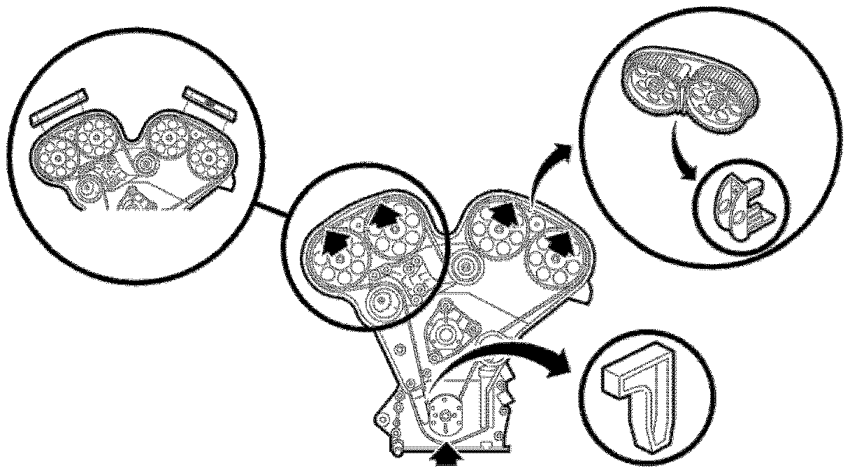 The upper idler pulley (cam 1 and 2) and lower idler puller (cams 3 and 4) use different bolts and spacers of different thickness. The upper idler pulley uses a narrow 5 mm (0.20 in) thick spacer and a black bolt. The lower idler pulley uses an 11 mm (0.40 in.) thick spacer and a silver bolt.