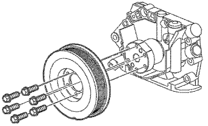 16. Remove power steering pump pulley bolts.
