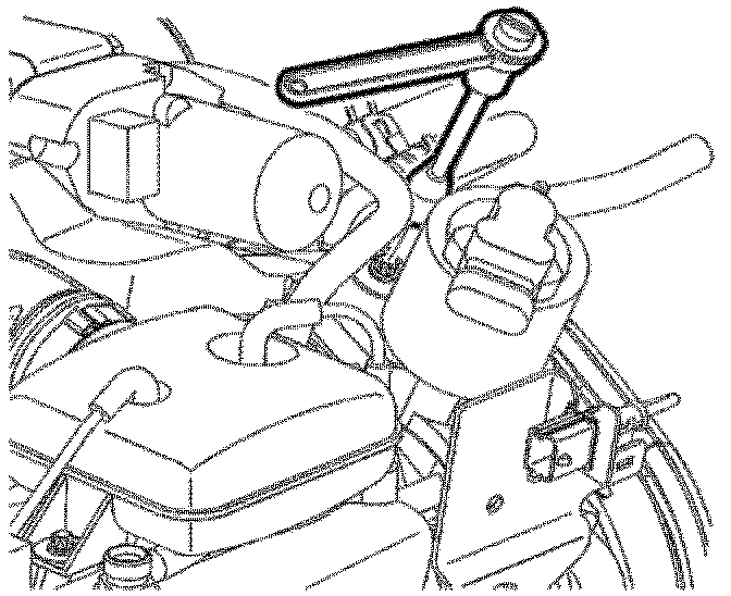 8. Remove accessory drive belt using a 15 mm wrench to compress tensioner.