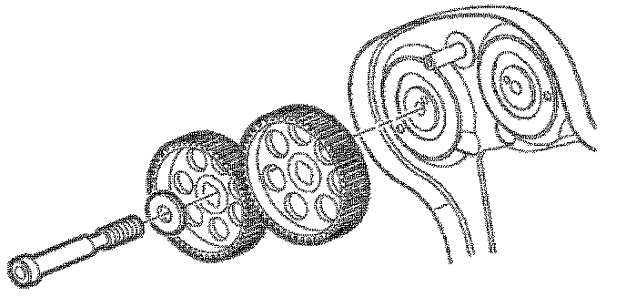 38. Remove camshaft gears. Use Timing Belt Alignment Kit J 42069-1 and J 42069-2 camshaft locks to lock gears when initially loosening camshaft gear bolts.