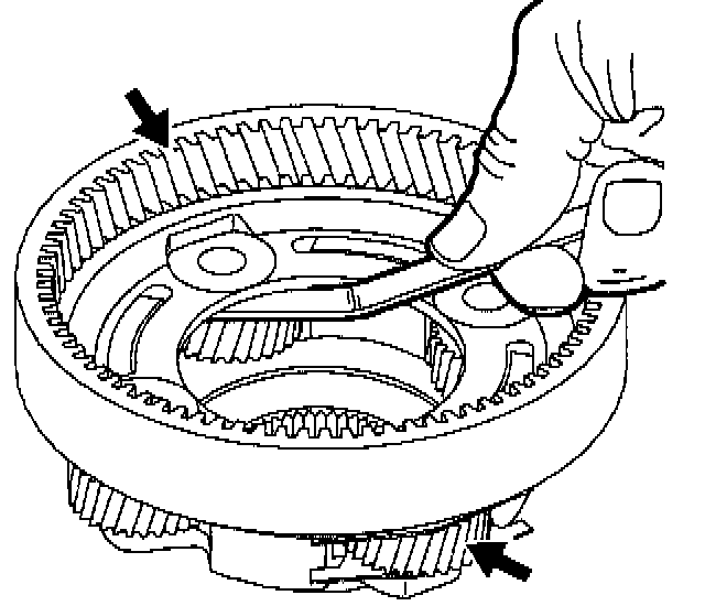 2. Inspect the reaction internal gear and input carrier assembly for damage or excessive wear. Specifically inspect condition of pinion gears, washers, and thrust bearings.