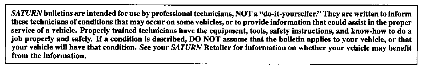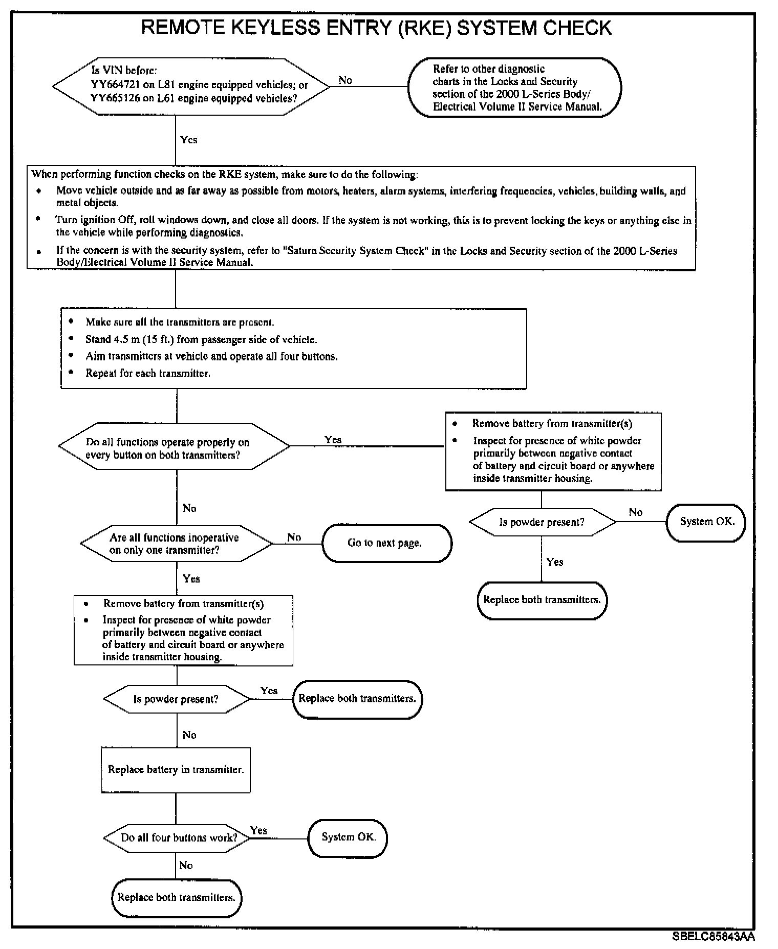 ^ 2000 Saturn L-Series vehicles equipped with RKE (RPO AU0) and L61 (4-Cylinder) engines built before VIN YY665126