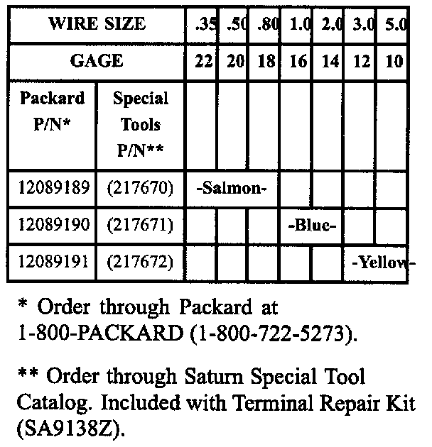Saturn recommends that approved Packard Electric Crimp and Seal Splice Sleeves (or equivalent) be used.