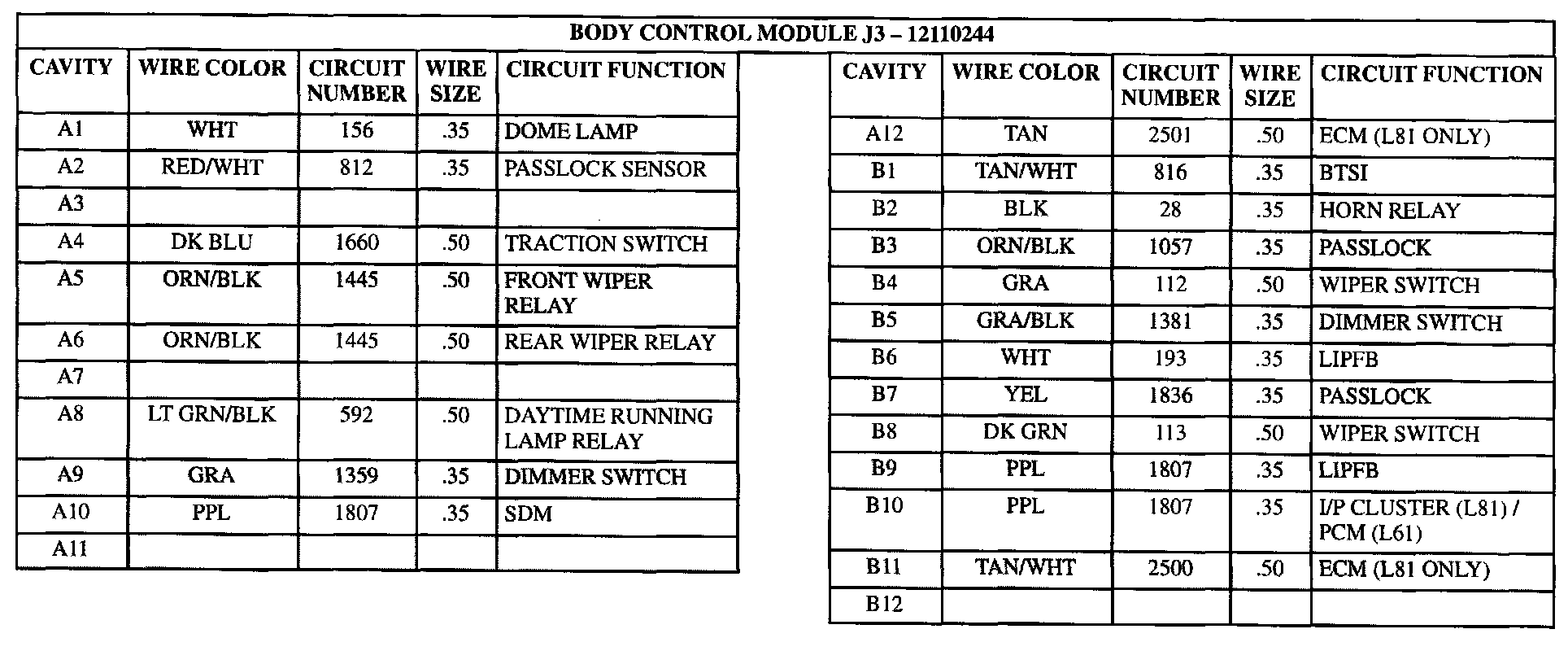 Body Control Module J3: