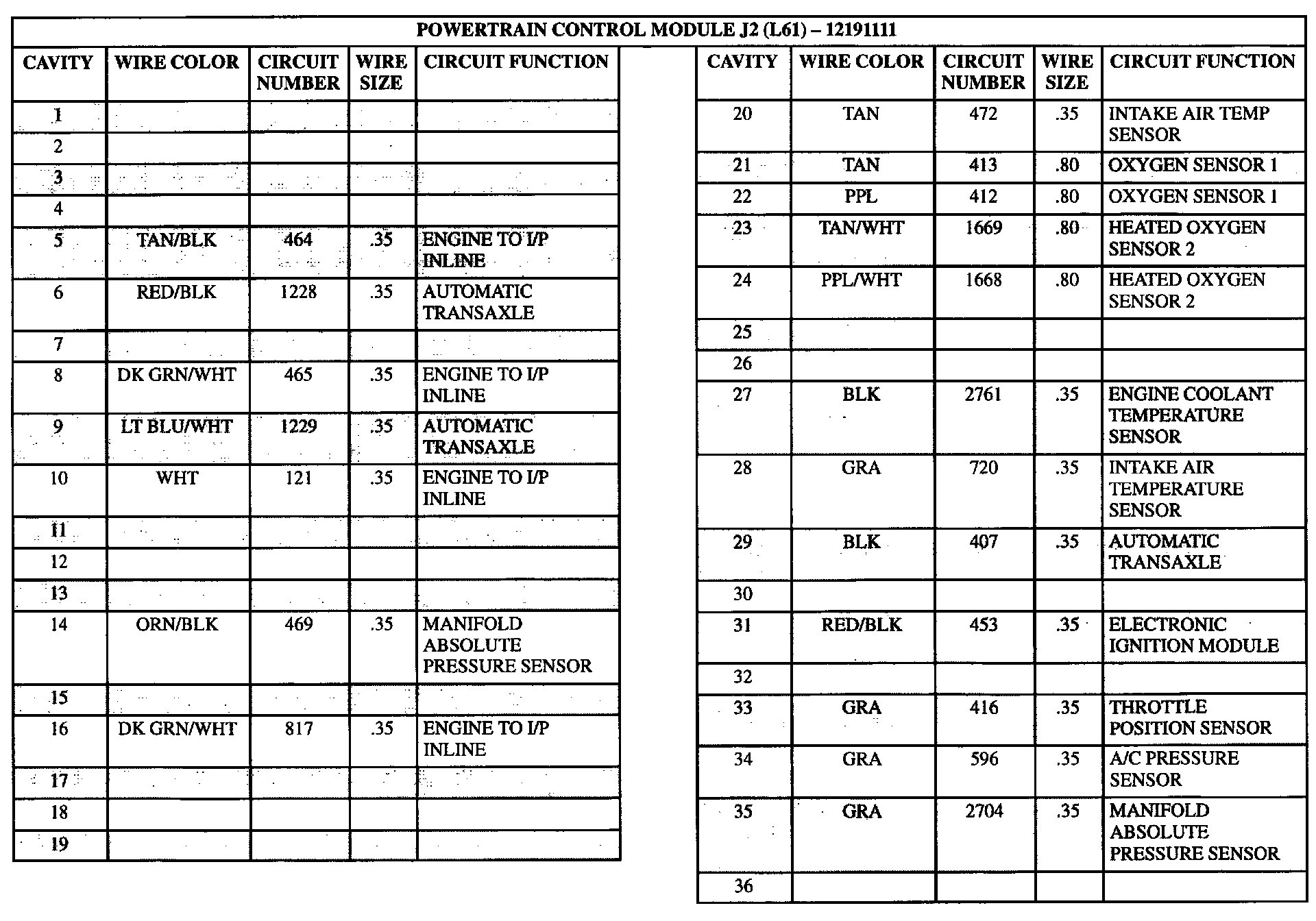 Powertrain Control Module J2 (Part 3 Of 4):
