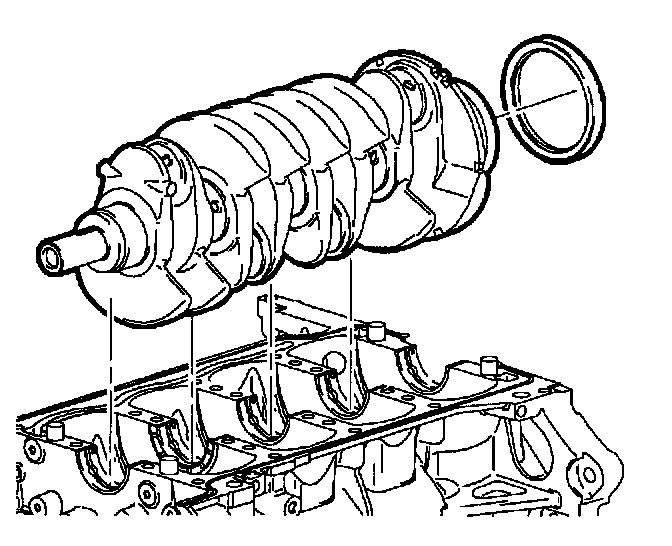 1. Install upper crankshaft bearings and lubricate bearing surfaces with engine oil.