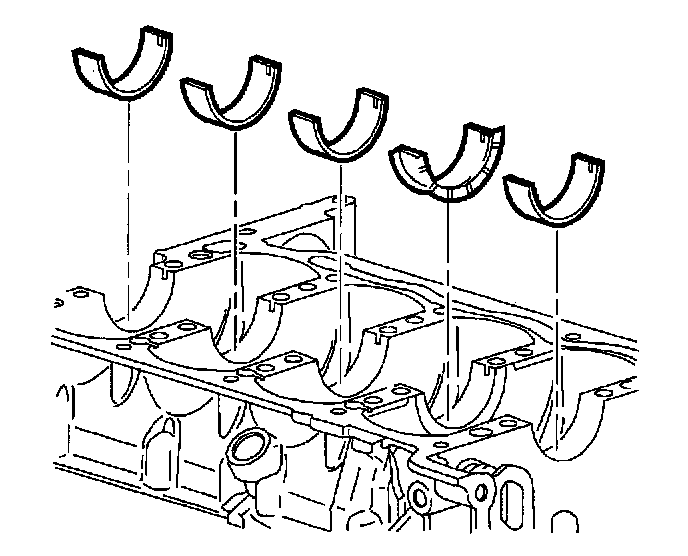 3. Install lower bearing halves (without grooves) into lower crankcase. Apply oil to bearing surfaces.