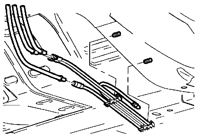 7. Release fuel line bundle from underbody plastic retainers.