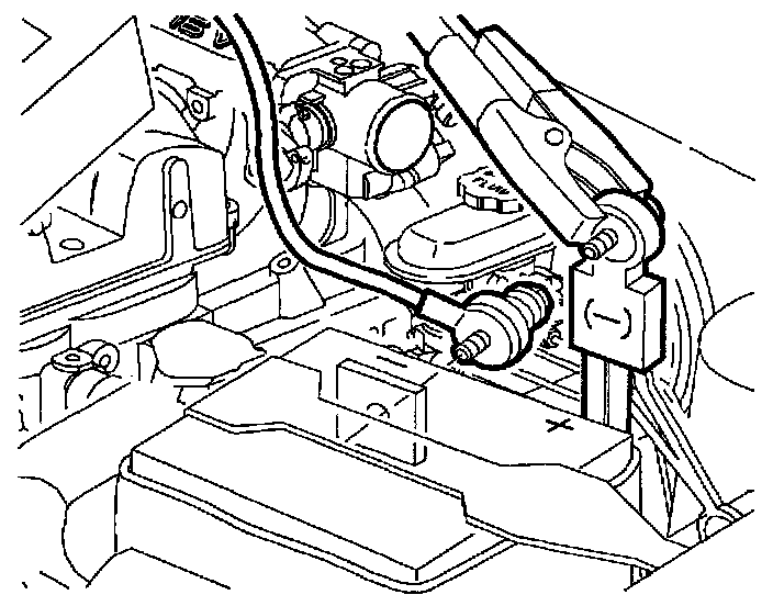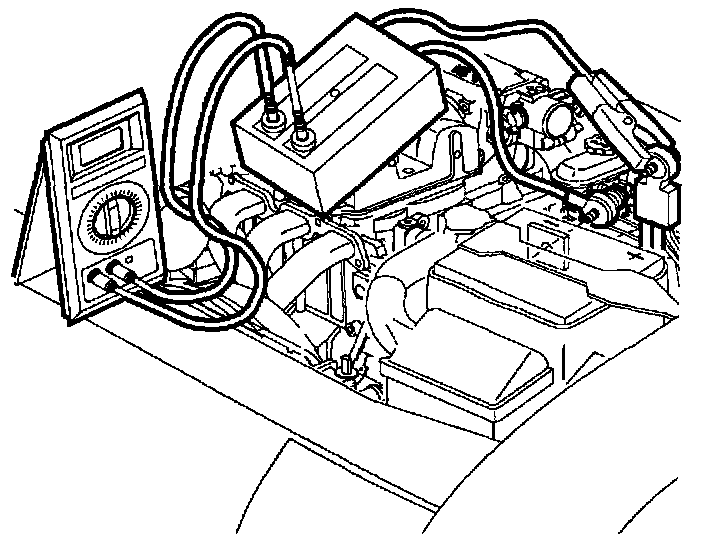 IMPORTANT: The alligator clamp on the parasitic load test device must be connected to the flat pad part on the negative battery cable. Do not connect the alligator clamp to the bolt on the negative battery cable; this will cause incorrect readings.