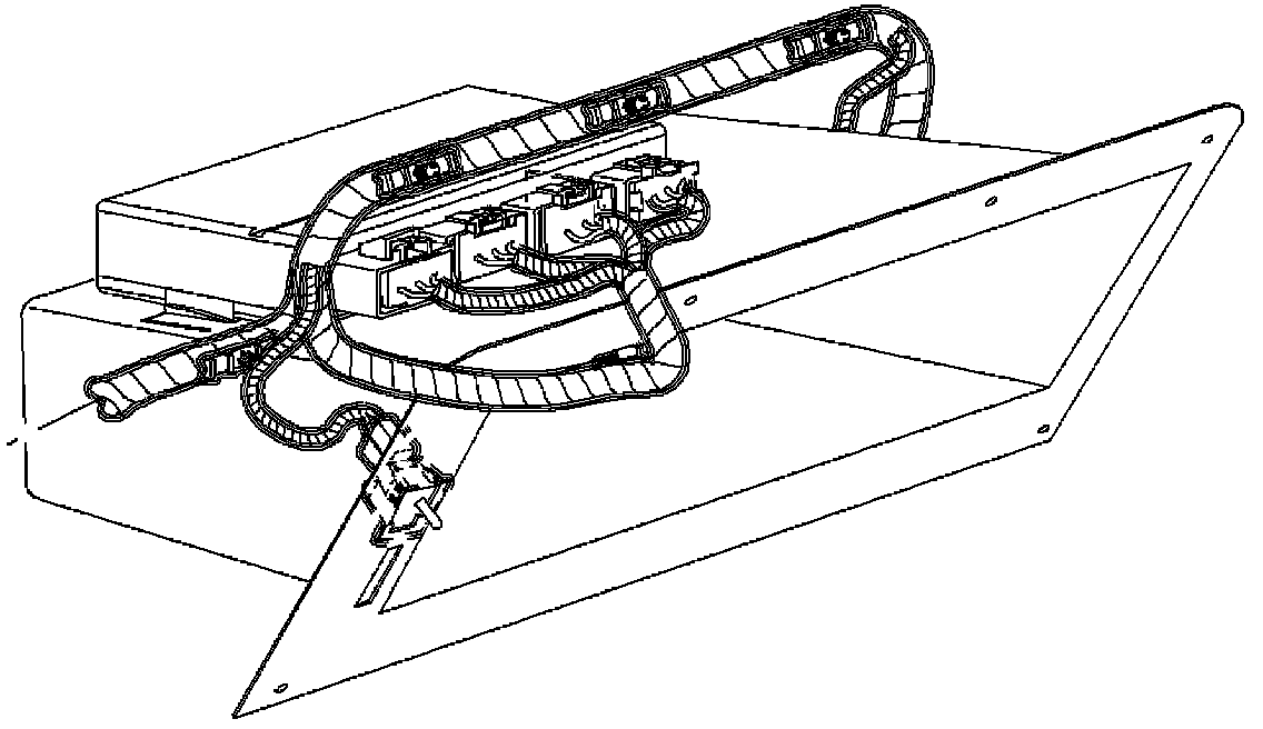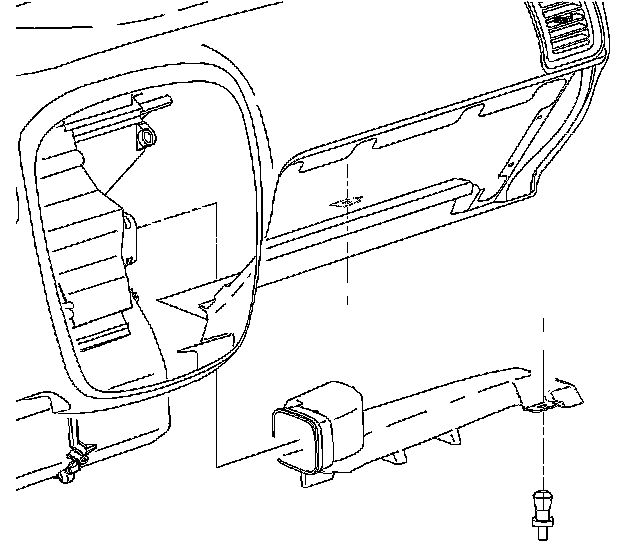 24. Insert inflator module through I/P opening with vinyl edge UP and harness on right side of vehicle.