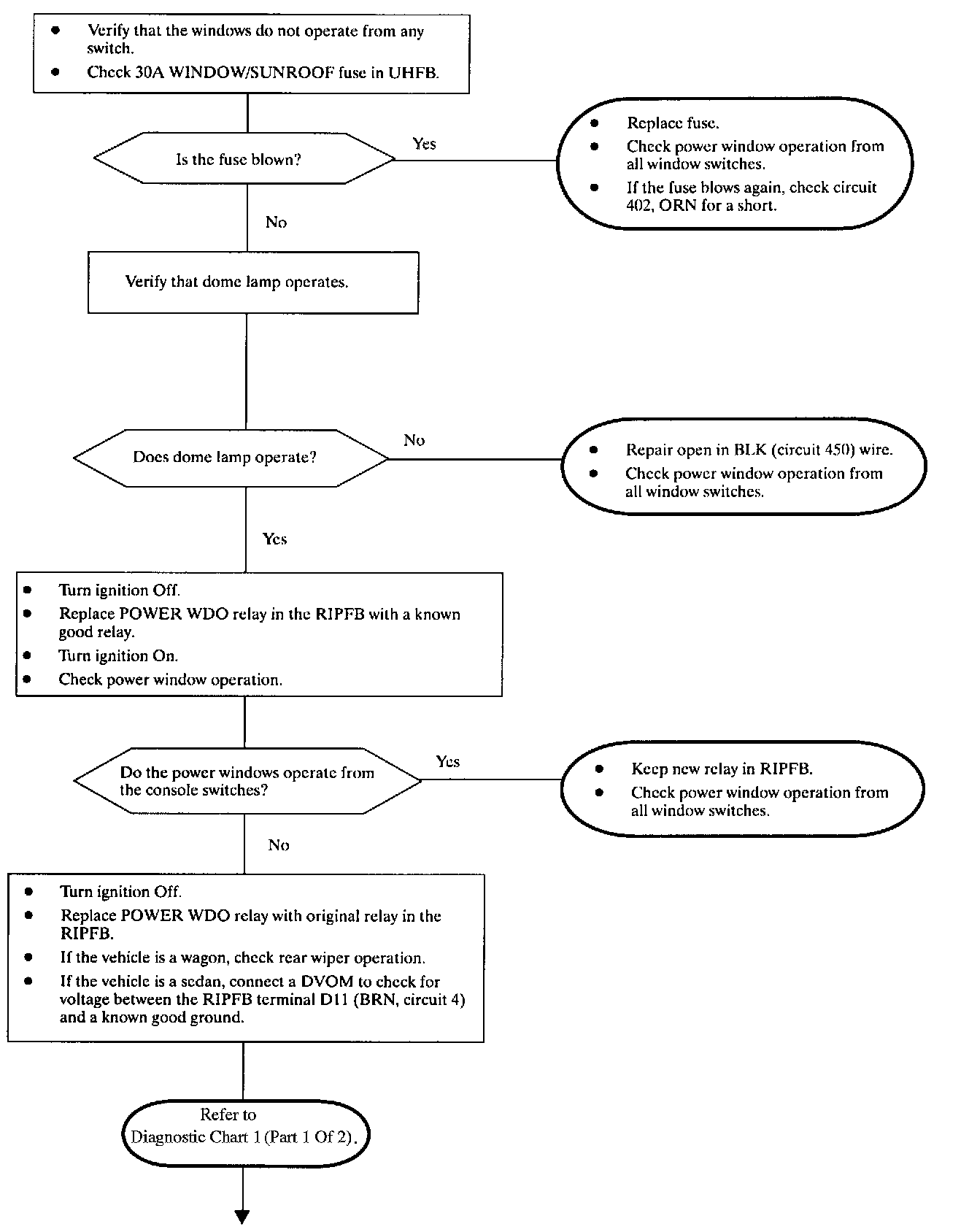 Power Window Diagnostic Charts