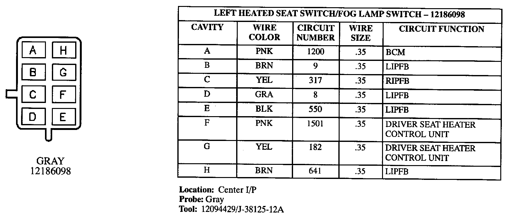 Left Heated Seat Switch/Fog Lamp Switch: