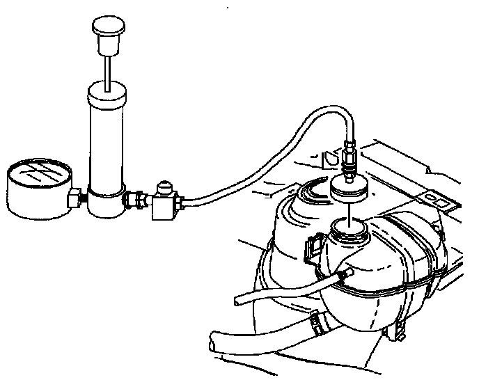 3. Install surge tank adapter J-43421 to the coolant surge tank.