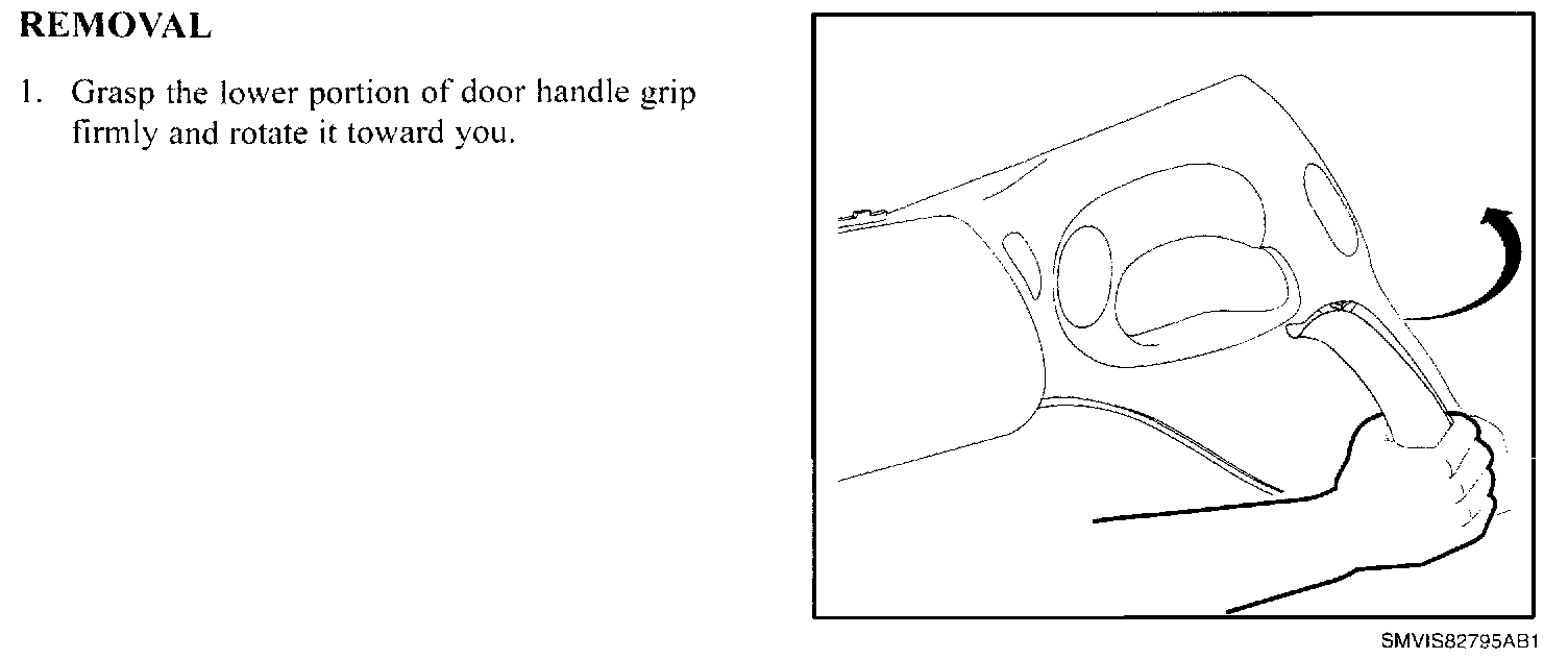 ^ 2001 L-Series Body Electrical Volume I Service Manual; page 148; step 1 of the "Door Pull Handle Inner - Front" removal procedure.