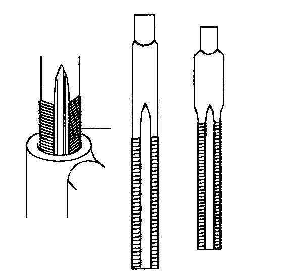 Select proper tap specified in table and tap the hole to a sufficient depth that will accommodate the insert required.