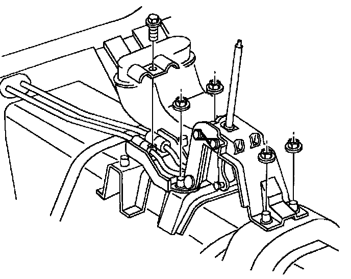 4. Remove shifter control assembly to floorpan attachment nuts.