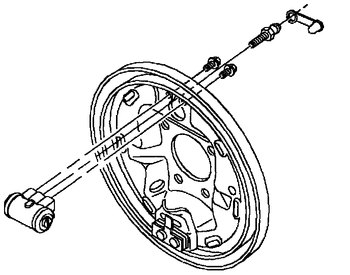 1. Install new wheel cylinder onto backing plate with fasteners.