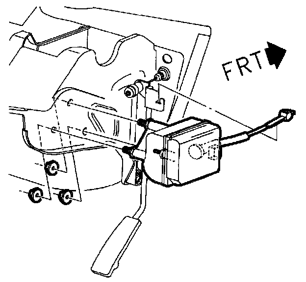 3. Connect cruise control rod bracket to accelerator pedal. Snap the locating tab into the hole in the accelerator pedal.