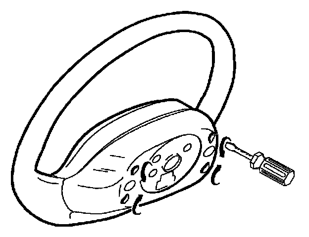 3. Remove inflator module by inserting a short flat blade screwdriver into the triangle shaped hole in the rear steering wheel shroud.