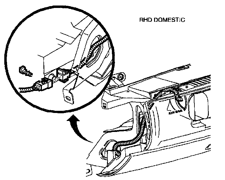 4. Disconnect driver yellow two-way connector; clipped to steering column brace.