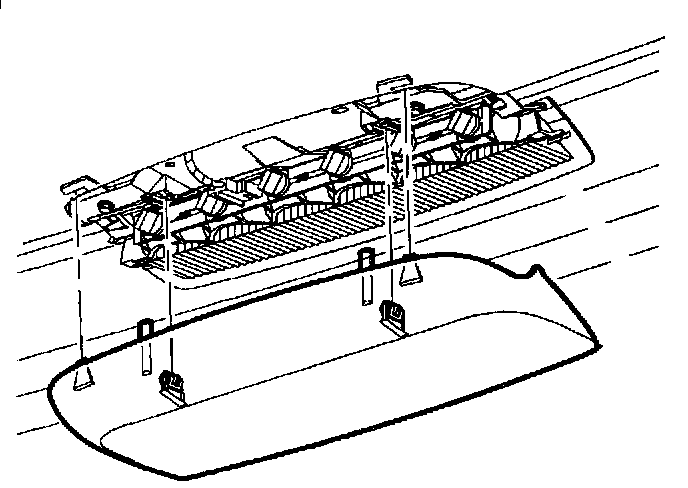 NOTE: Do not pull on edges or center high-mount stop lamp cover. Damage to cover may result. Slide fingers between cover and lamp and pull down carefully.