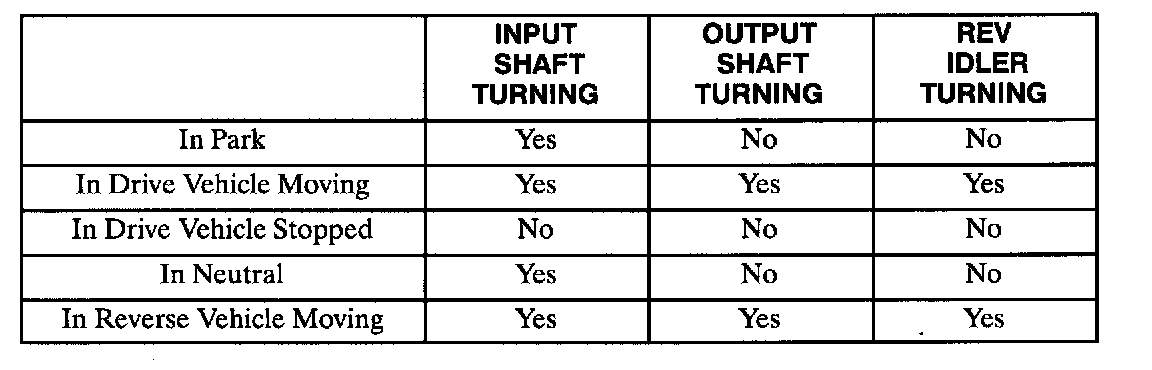 The following conditions apply when the input shaft only is moving (no clutches applied):