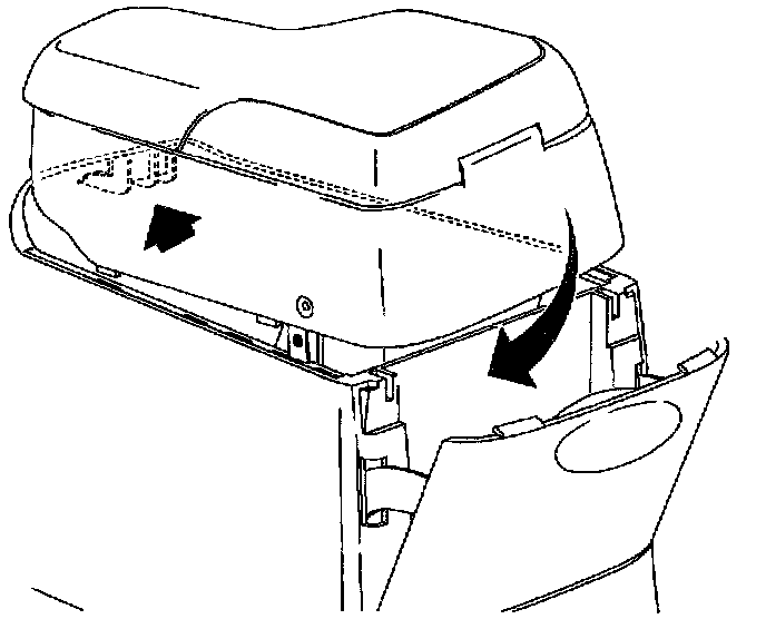 1. Tilt front of armrest down so the front retaining tab will slide under edge of console.