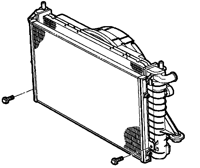 14. Remove two lower condenser bracket-to-radiator bolts.