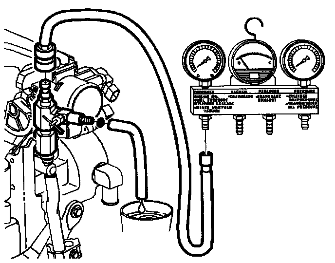 CAUTION: Whenever fuel line fittings are loosened or disconnected, wrap a shop cloth around fitting while connecting gauge, to collect fuel. place cloth in an approved container.
